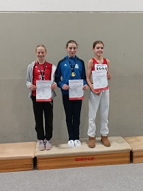 Kira Reinhertz (Spvgg. Besigheim) kämpfte mit Rückenproblemen und beendete den Weitsprung bereits nach zwei Versuchen. Trotzdem reichte es mit 5,03 Meter zu Bronze bei der W 15. Gülnihan Akduman sprintete solide mit 8,89 Sekunden die 60 Meter. Pauline Ochs (beide TSV Bönnigheim) hatte nach einer Umstellung der Technik noch Probleme. Ihre Kugel landete bei 8,74 Meter. Mia Koch (Spvgg. Besigheim) blieb, sehr gut im Rennen über 60 Meter Hürden der W 14 liegend, heftig an einem Hindernis hängen. Mit dadurch lädiertem Knie biss sie beim Stabhochsprung auf die Zähne und stellte ihre Bestleistung ein. Die 2,50 Meter wurden hier mit Silber belohnt.