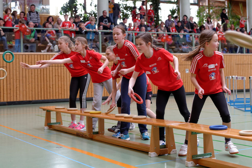 140 Kinder stellten in den bewährten Disziplinen Sprint, flach und über Hürden, Ballwurf mit Medizinball und Zielwerfen sowie bei verschiedenen Sprüngen ihr Können unter Beweis. Abschluss bildete wie immer der Biathlon, der von lautem Anfeuern von der vollbesetzten Tribüne unterstützt wurde. Über zwei Stunden zeigten die Kinder vollen Einsatz und tolles Durchhaltevermögen.