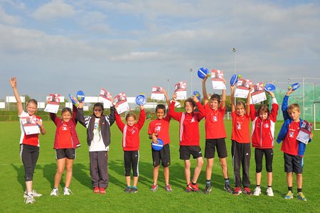 Dem „bunten Gewusel“ hat sichtbar die Team-Arbeit  Spaß gemacht: alle waren mit Eifer und Freude dabei, und  das Schönste: lachende Gesichter. Jedes Kind bekam zum Abschluß eine Urkunde und ein kleines Geschenk  der VR-Bank.