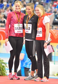 Durch eine sensationelle Steigerung überraschte Daniela Ferenz von der LG Neckar-Enz am Wochenende mit einer Bronzemedaille bei den Deutschen Hallenmeisterschaften in Karlsruhe. Über 400 Meter verbesserte sie sowohl im Vorlauf als auch im Endlauf erneut ihre Hallenbestzeit, die nunmehr bei 53,93 Sekunden steht. Glücksstrahlend nahm sie dann bei der Siegerehrung ihre erste Medaille bei Deutschen Meisterschaften im Aktivenbereich in Empfang.